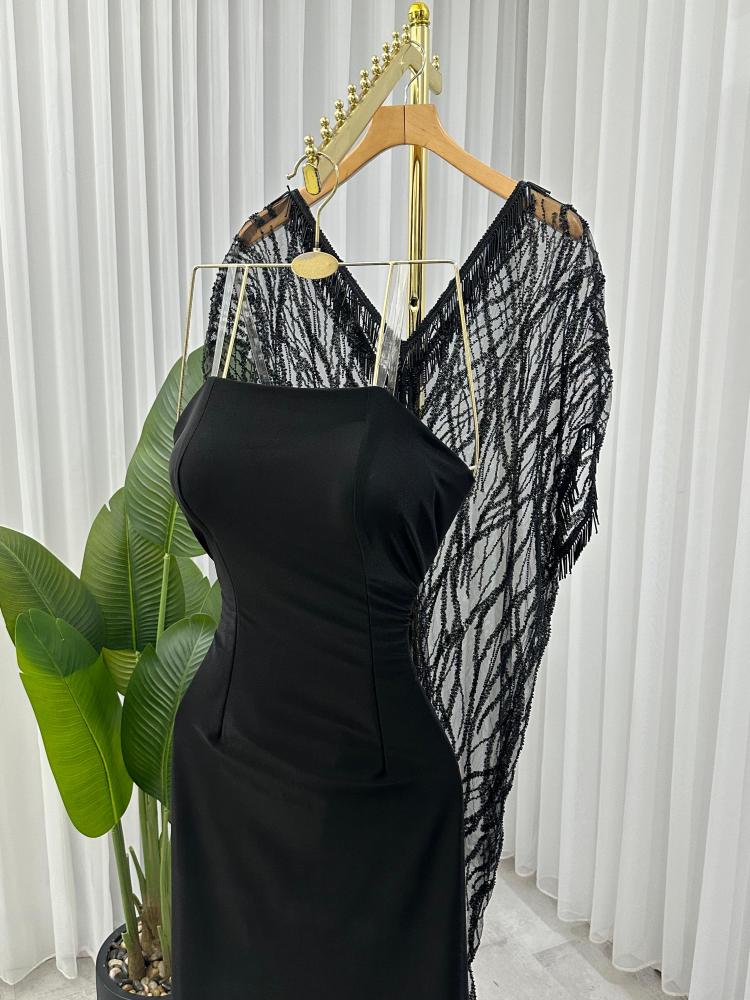 يتميز الفستان بقصة انيقة ورائعة مما يضفي عليه مظهرًا أنيقًا وفاخرًا ، يأتي بلون ( اسود ) ما يضيف لمسة من الجمال والأناقة على إطلالتك.