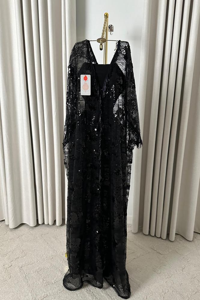 يتميز الفستان بقصة انيقة ورائعة مما يضفي عليه مظهرًا أنيقًا وفاخرًا ، يأتي بلون ( اسود ) ما يضيف لمسة من الجمال والأناقة على إطلالتك.