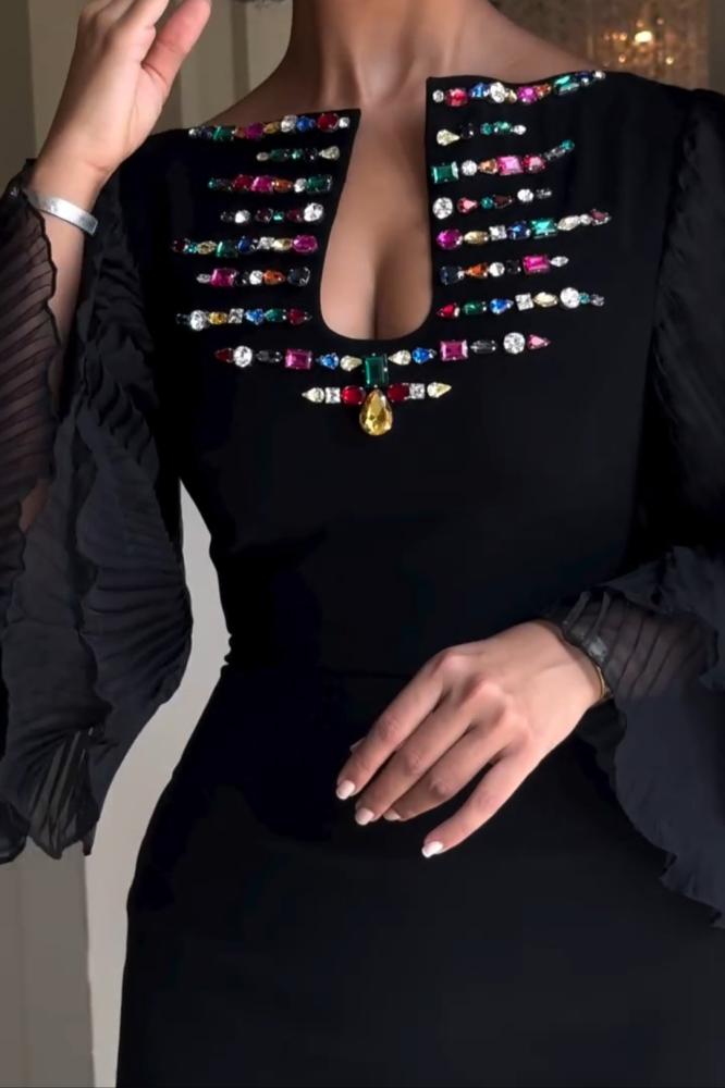 اختاري الأناقة والتميز مع فستان سهره بتطريز فاخر بقصته الجذابه تصميمه الفاخر والمميز يضفي لمسة من الفخامة على إطلالتك في المناسبات الخاصة، من حفلات الزفاف إلى السهرات الراقية.