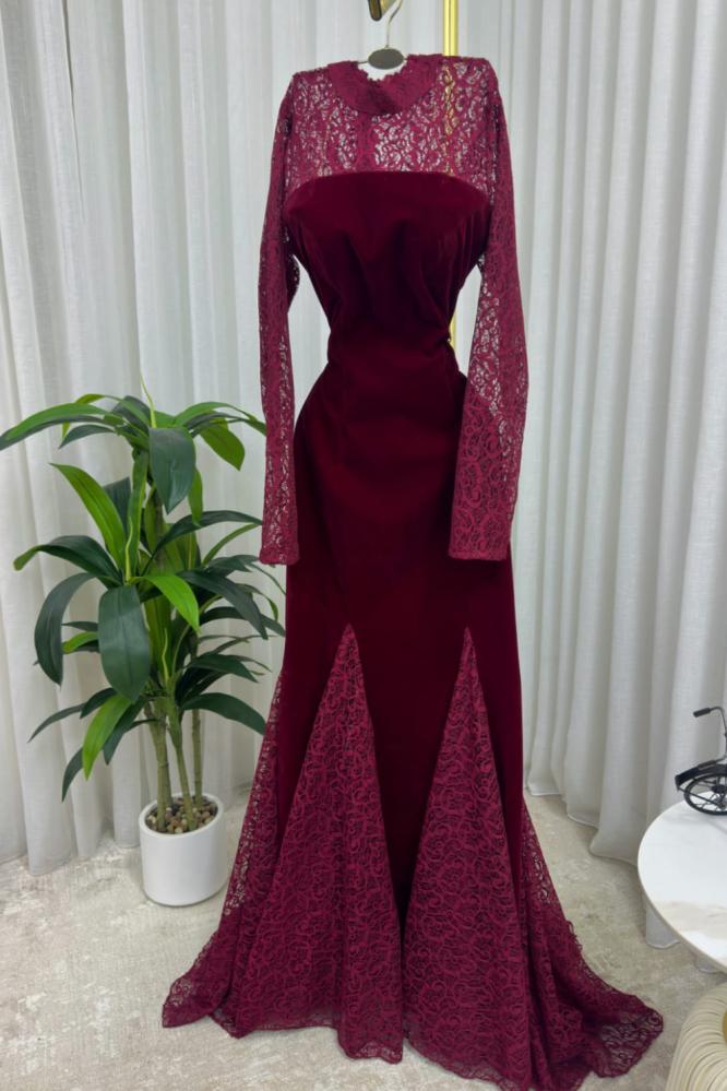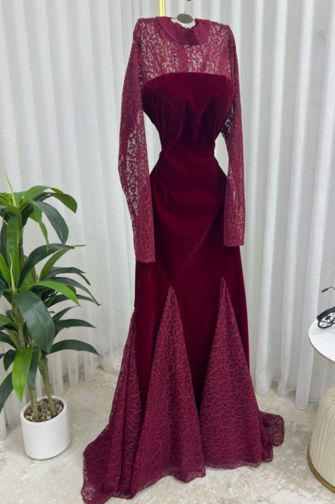 مصنوع من خامة الجوخ الفاخرة مزين بدانتيل على الصدر والكلوش