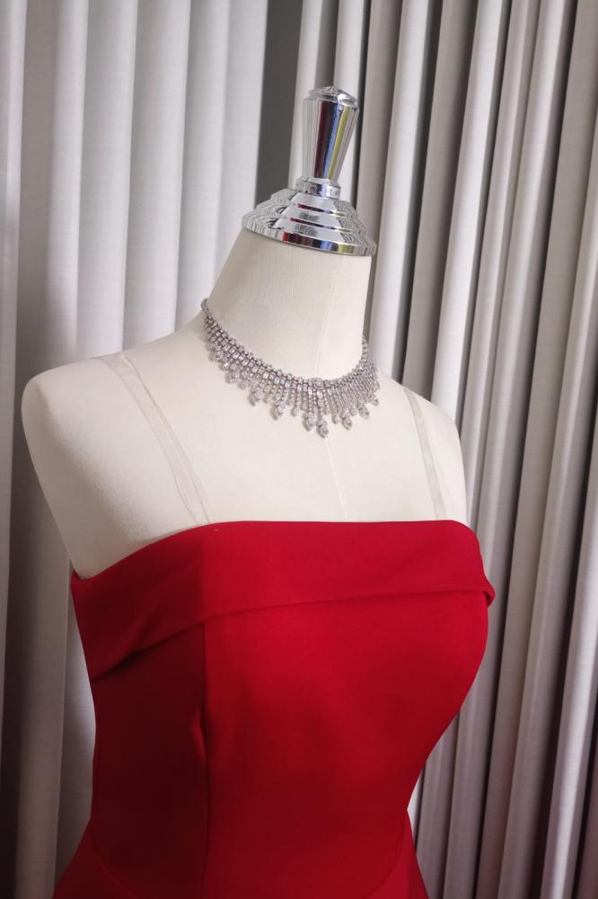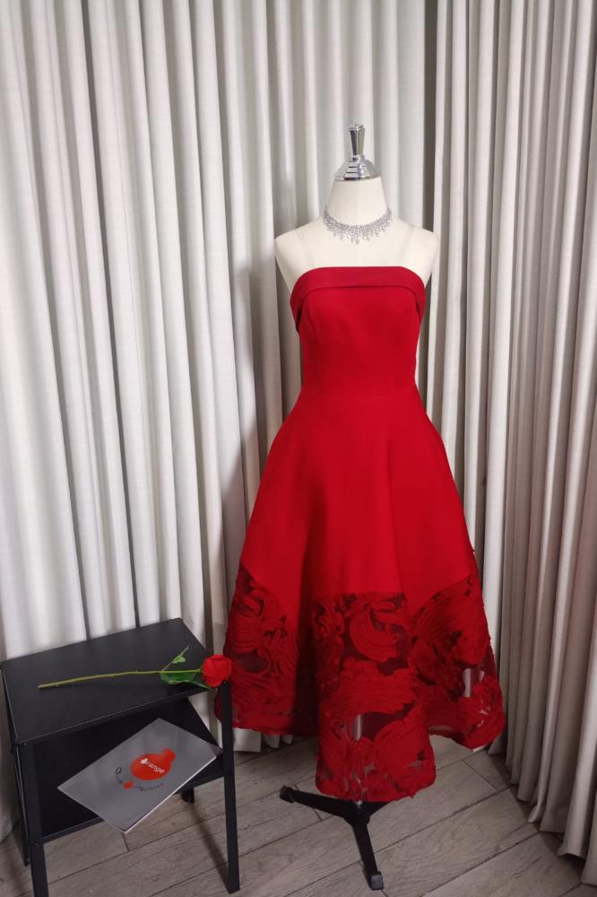 فستان ناعم توتي او برقندي واحمر مميز بقصته الجذابة